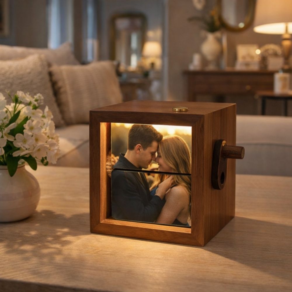 Ahogy eltekered az oldalán lévő kart, a fotók sorra életre kelnek, mintha egy miniatűr film peregne előtted.