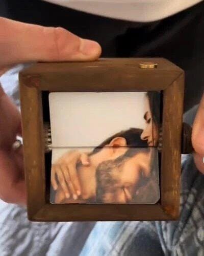 Ahogy eltekered az oldalán lévő kart, a fotók sorra életre kelnek, mintha egy miniatűr film peregne előtted.